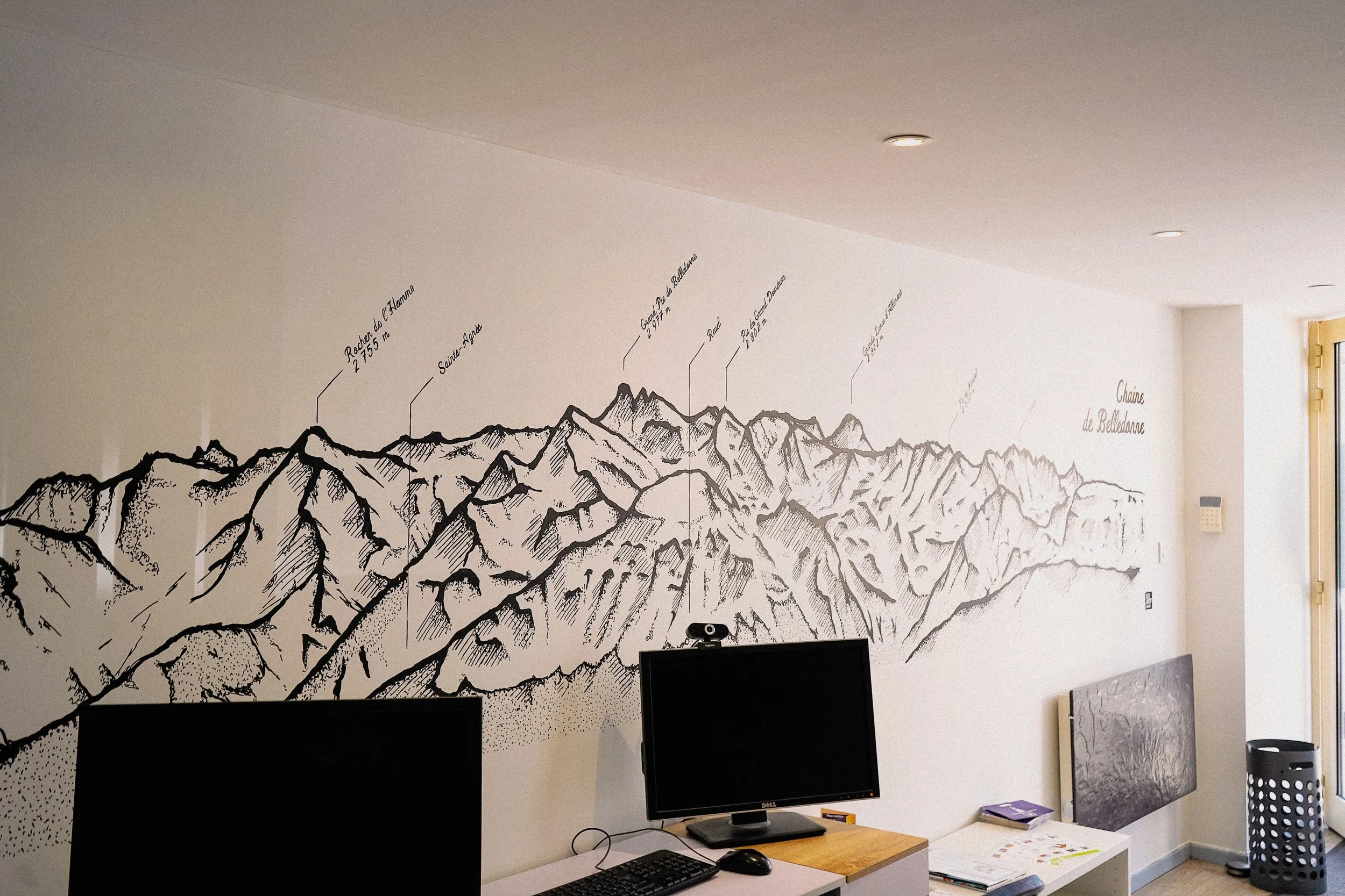Après étude du projet et prises de vue photos, je vous présente une simulation "in situ" de votre projet, en HD. Ainsi, vous pourrez vous rendre compte du rendu avant dessin sur le mur.
